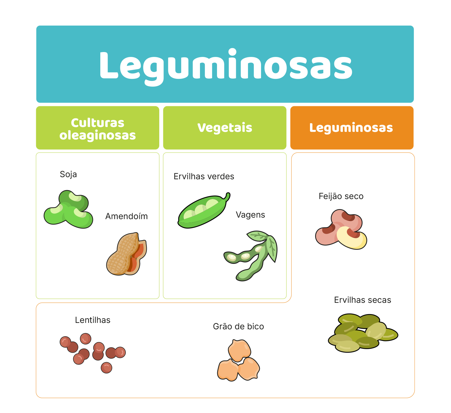 As leguminosas pertencem à família Fabaceae, uma das maiores famílias de plantas, que inclui géneros como Cicer, Lens e Vicia.